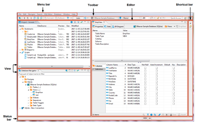 DBeaver allows developers to interface with SQL database using a GUI, using this tool you can make alterations to the database, visualise table relationships and more.