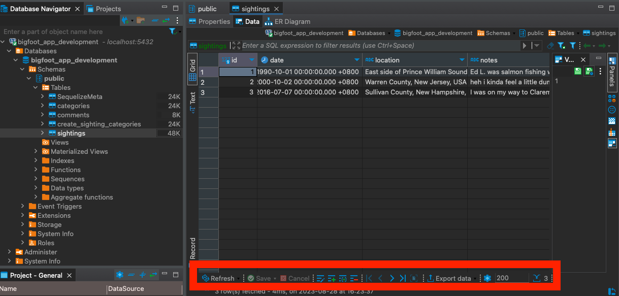 Using DBeaver you are able to select individual tables such that you can manipulate the data stored within. To do this use the editor portion of the application, and tool bar at the bottom of the page. This affords developers an easier way to manage data instead of interfacing with PostgreSQL using just the CLI.