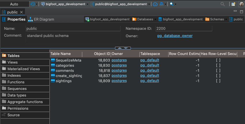 From here you can select a database and choose to look at the "Properties" or "ERD". This is on the right side of the application.