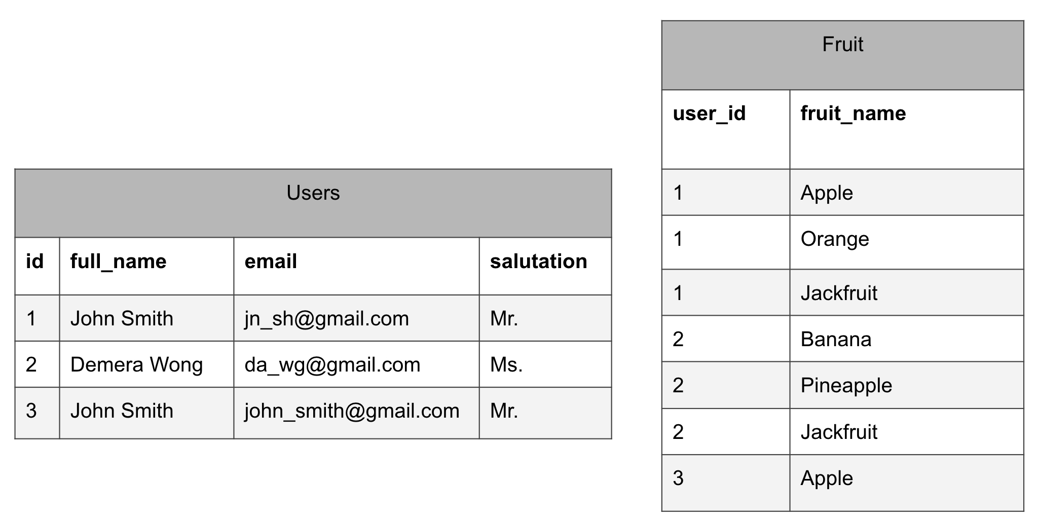 Considering users will want to order fruit and track their previous orders we will need to develop two tables that are related.