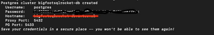 processes = ["app"]Change the above from '<Generated-.....> to the credentials that were given to you from fly.io when the database credentials were created above.