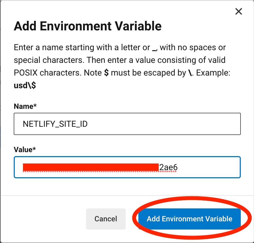 NETLIFY_SITE_ID and NETLIFY_ACCESS_TOKEN respectively. These environmental variables are required such that CircleCI can trigger deployments through Netlify. In addition to these you will also need to create and store all the credentials in your .env that you pasted in the Netlify project to connect Firebase.