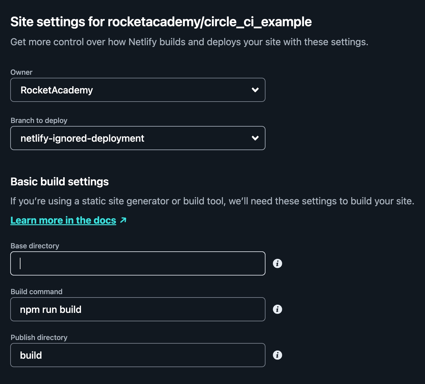 Now add in the branch that Netlify should track and deploy from, I am going to target netlify-ignored-deployment: