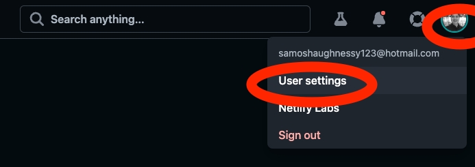 To get the Personal Access token, click on your profile picture and then go into User settings.