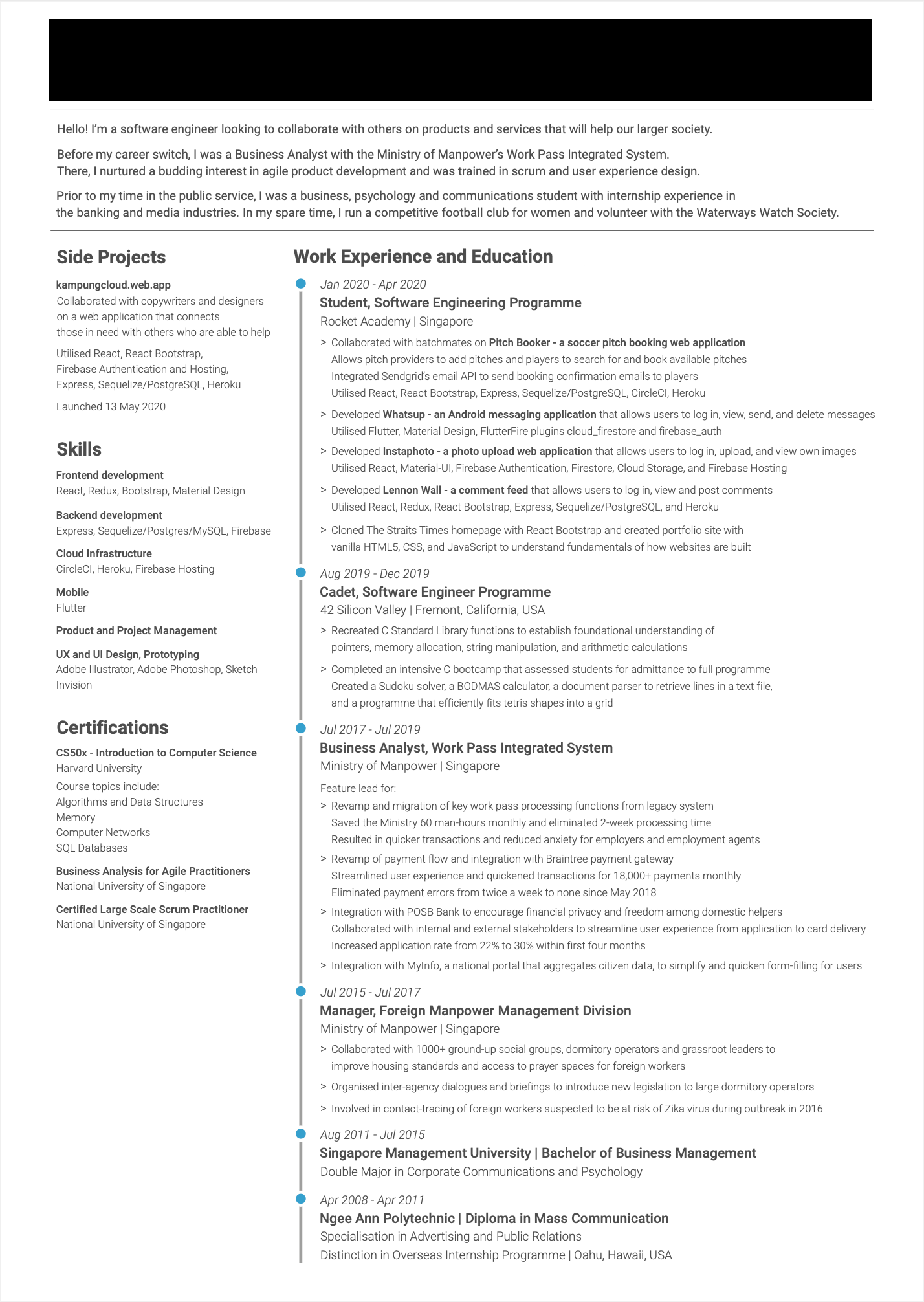 How you communicate these points will vary from person to person, but there is a general pattern for Coding Bootcamp grads. If you're not sure if your resume communicates your points, ask family or friends to review for 10 seconds and see what they grasp.